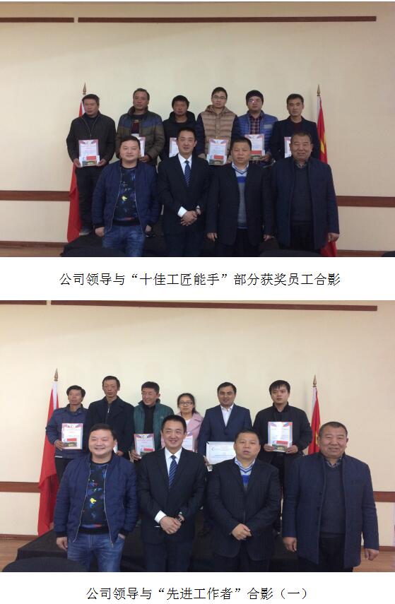 公司按照“年度十佳工匠能手”、“年度先進工作者”、“海外工作貢獻獎”的三個類別對員工進行表彰,頒發(fā)榮譽證書、頒發(fā)海外工作貢獻獎金牌、頒發(fā)獎金、留影合照,精神鼓勵為主,物質獎勵為輔。頒獎合影環(huán)節(jié)將會議推向高潮,引起在座員工內心共鳴,不由地為他們鼓掌祝賀,以表達對他們敬業(yè)愛崗、吃苦耐勞精神的深深敬意!