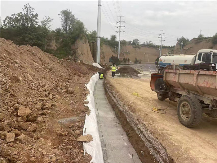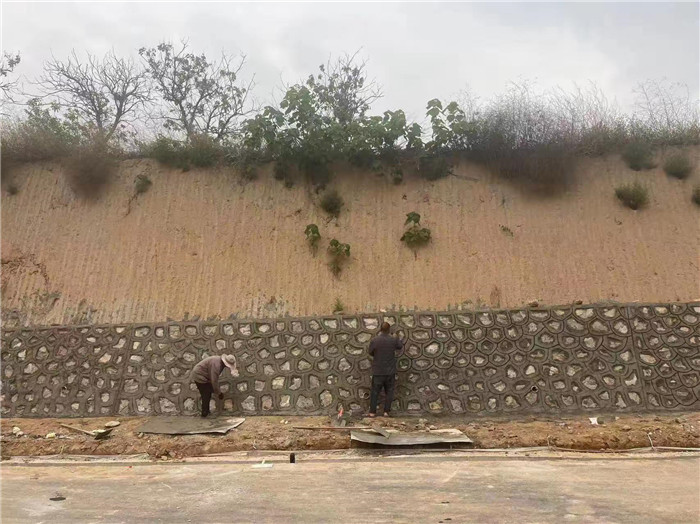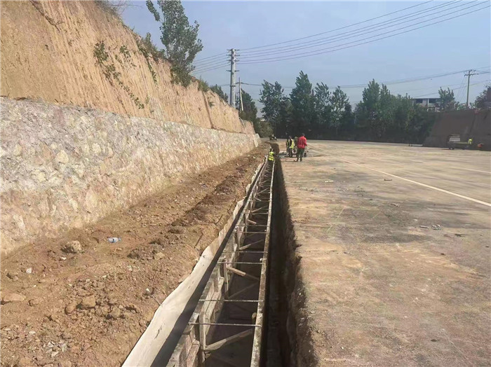 三號支線護(hù)腳墻勾縫、邊溝施工中。