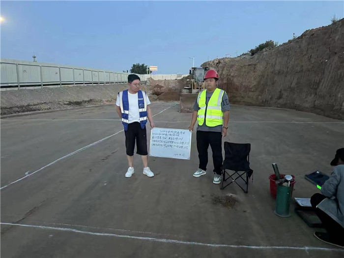 填筑第15層現(xiàn)場檢測壓實度。并對土方填筑中線及寬度進(jìn)行復(fù)測。